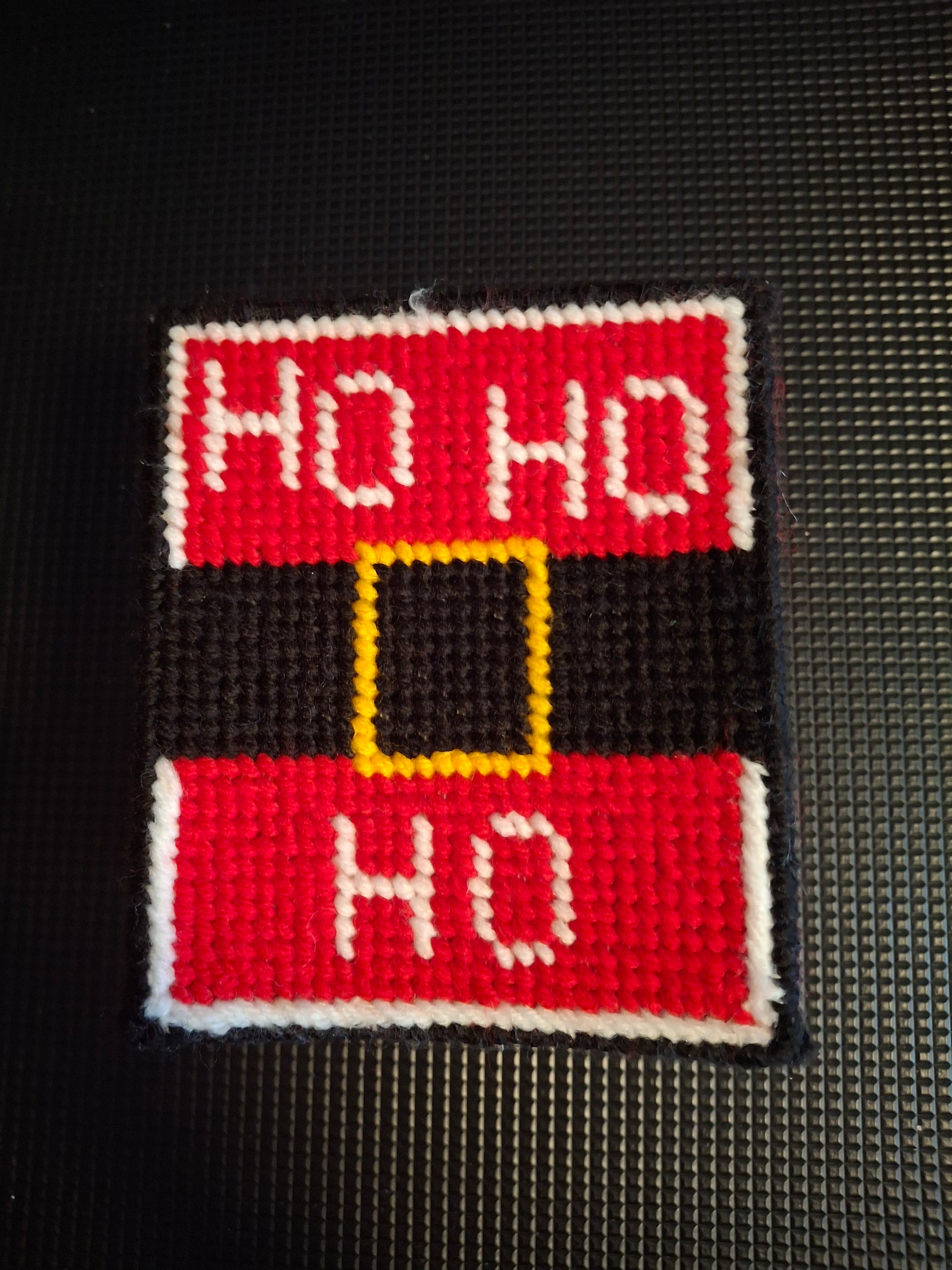 Christmas design tissue box cover made from plastic canvas and the cross stitched with yarn for design